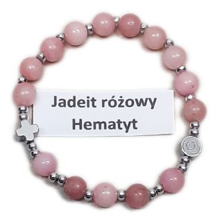 Bransoletka dziesiątka DZIECIĘCA kamień naturalny JADEIT RÓŻOWY HEMATYT