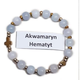 Bransoletka dziesiątka DZIECIĘCA kamień naturalny AKWAMARYN HEMATYT