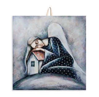 Kafelek na ceramice 15x15cm Anioł z dzieciątkiem (szare tło)