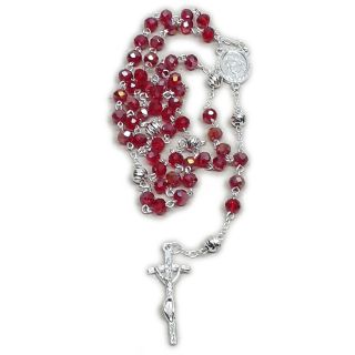Różaniec na drucie kryształ CZERWONY *5mm ł. Matka Boża