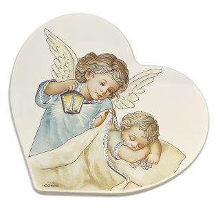 Obrazek na drewnie 12x11cm Anioł Stroż (latarka) w sercu NIEBIESKI