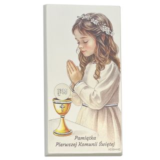 Obrazek na drewnie 9x16cm I Komunia ŚW. DZIEWCZYNKA kolor