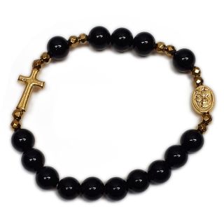 Bransoletka dziesiątka kamień naturalny - ONYX łączniki złote