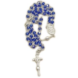 Różaniec na drucie kryształ NIEBIESKI *6mm ł. Matka Boża