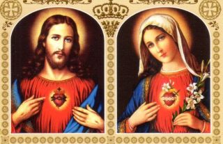 | 68428 4.50 zł Obrazek laminowany Najświętsze Serce Jezusa i Niepokalane Serce Maryi. Modlitwa