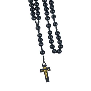 Różaniec drewniany na sznurku kulka CZARNA B.DUŻA (12mm)