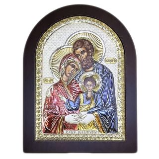Ikona srebrna (KOLOROWA) 20x26cm Święta Rodzina (łuk) D