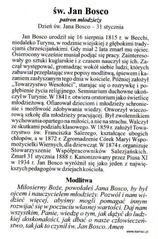 Obrazek laminowany Św. Jan Bosko .Patron młodzieży, modlitwa