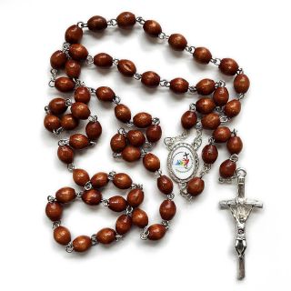 Różaniec na drucie drewniany RUDY, łącznik Rok Pielgrzyma