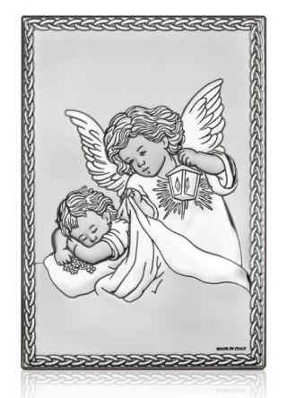 Obraz srebrny 10x14cm Anioł Stróż (latarka) Pamiątk Chrztu Świętego