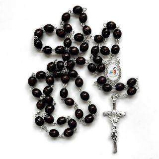 Różaniec na drucie drewniany owal łacznik MB z Dzieciątkiem