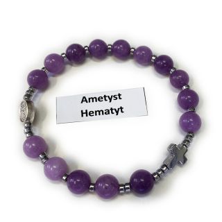 Bransoletka dziesiątka kamień naturalny - AMETYST + HEMATYT (różne wzory)