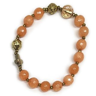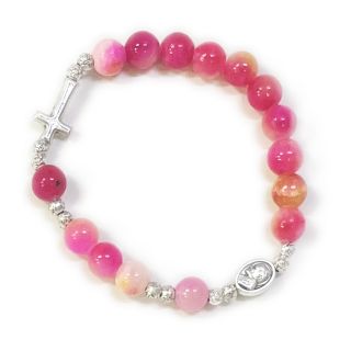 Bransoletka dziesiątka kamień naturalny - AGAT RÓŻOWY różyczki metalowe