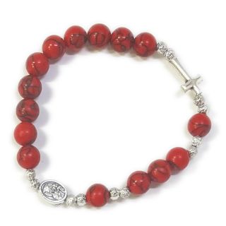 Bransoletka dziesiątka kamień naturalny - HOLWIT CZERWONY różyczki metalowe