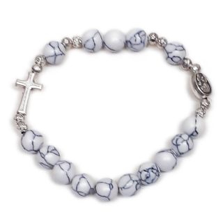Bransoletka dziesiątka kamień naturalny - HOWLIT BIAŁY różyczki metalowe