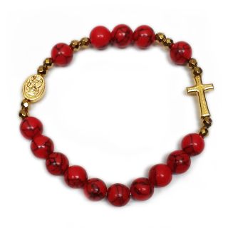 Bransoletka dziesiątka kamień naturalny - HOWLIT CZERWONY łączniki złote