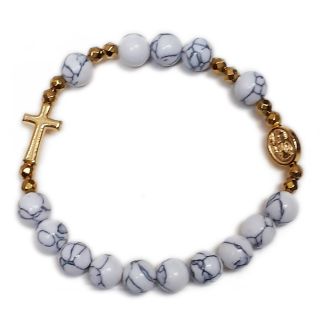 Bransoletka dziesiątka kamień naturalny - HOWLIT BIAŁY łączniki złote