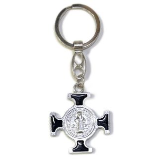 Brelok metalowy - krzyż Św. Benedykta z CZARNĄ wkładką