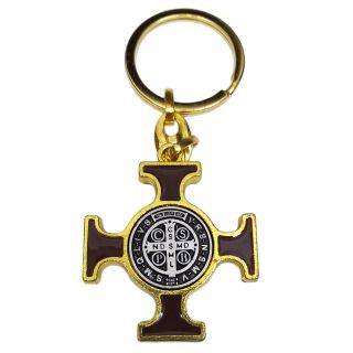 Brelok metalowy - krzyż Św. Benedykta z BRĄZOWĄ wkładka na "złotym" łańcuszku