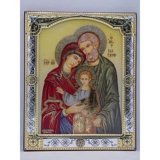 Ikona (grecka) srebrno kolorowa pozłacana Św. Rodzina 18x23 cm