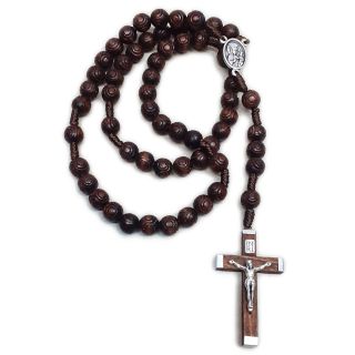 Różaniec na sznurku drzewo lavoratto- BRĄZOWY *7 krzyżyk drewniany brązowy