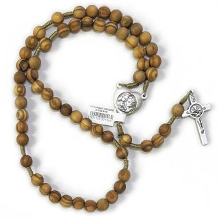 Różaniec na sznurku Św. Benedykt drewniana kulka (metalowe łączniki)