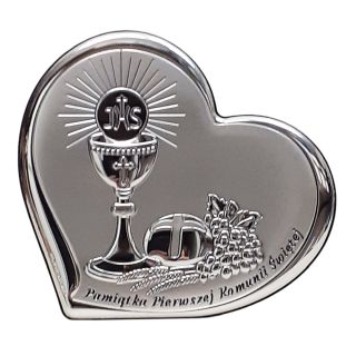 Obraz srebrny 15x14cm Pamiątka I Komunii Świętej (kielich w sercu)