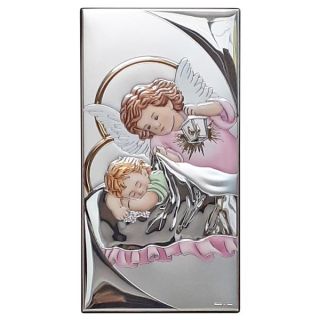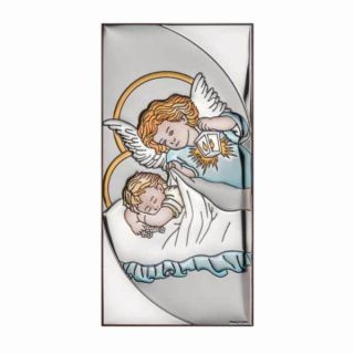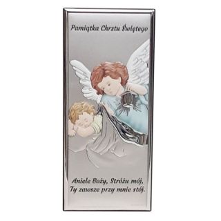 Obraz srebrny 6x14cm (KOLOR) Anioł Stróż (latarka) Pamiątka Chrztu Świętego