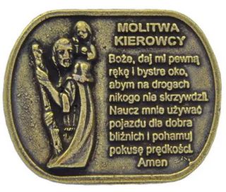 Plakietka metalowa św. Krzysztof z modlitwą kierowcy, mosiądz