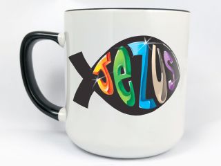 Kubek "Pan jest pasterzem moim..."czarny kontur