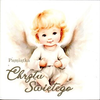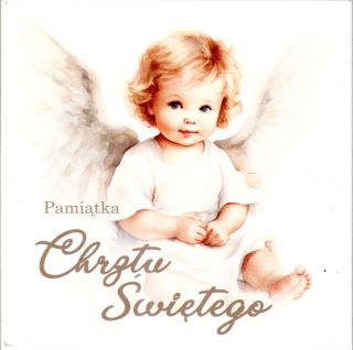 Ikona ANIOŁEK (napis- pamiatka chrztu świętego) 17x17cm na płycie drewnianej