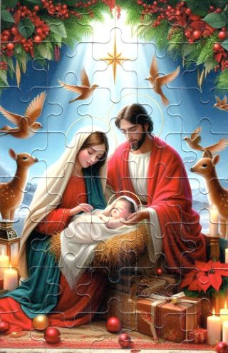 Puzzle Boże Narodzenie Św. Rodzina w stajence 20x13cm 40 elementów