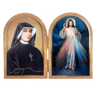 Ikona DYPTYK Jezu Ufam Tobie/Św. Faustyna drewniana składana 18x13cm