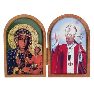 Ikona DYPTYK Matka Boża Częstochowska/Św. Jan Paweł II drewniana składana 13x9cm