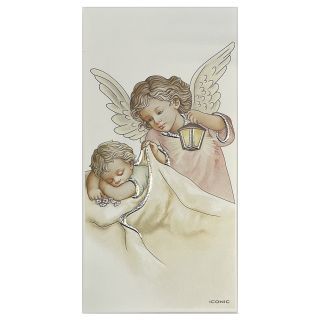 Obrazek na drewnie 6x12cm Anioł Stroż (KOLOR) latarka