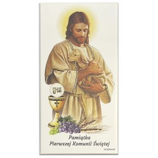 Obrazek na drewnie 9x18cm I Komunia PAN JEZUS Z OWIECZKĄ