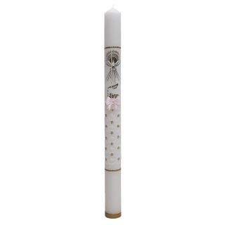 Świeca Chrzest - Duch Św. rzeźbiona kokardka różowa