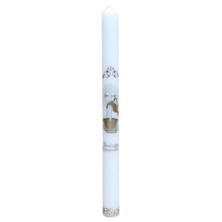 Świeca Chrzest - Chrzcielnica, gołąbek, kalkomania kolorowa